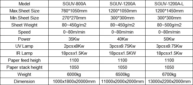 4: ชิ้นส่วน UV ใช้ 8-แหล่งกำเนิดแสงอิเล็กทรอนิกส์ที่ปรับได้ 12kW ซึ่งมีประสิทธิภาพความปลอดภัยที่ดีขึ้นอย่างมากกว่าแหล่งกำเนิดแสงแรงดันไฟฟ้าแบบดั้งเดิมแหล่งกำเนิดแสงสามารถปรับความสว่างโดยอัตโนมัติเมื่อการเปลี่ยนแปลงความเร็วในการทำงานของเครื่องซึ่งสามารถเปลี่ยนได้จาก 30% ถึง 100%- ดังนั้นการใช้พลังงานเฉลี่ยจะถูกบันทึกไว้มากกว่า 30%-